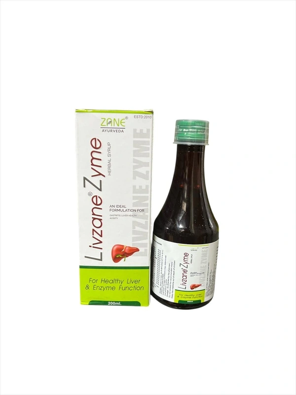 Livzane Zyme Syrup is a potent Ayurvedic liver and digestive health tonic formulated with a blend of herbs including Bhringraj, Giloy, Arjuna, Ashwagandha, Sarpunkha, Kalmegh, Chirayata, Makoy, Tulsi, Amla, Haritaki, Bahera, Kasni, Vaividang, Shilajit and Methi.